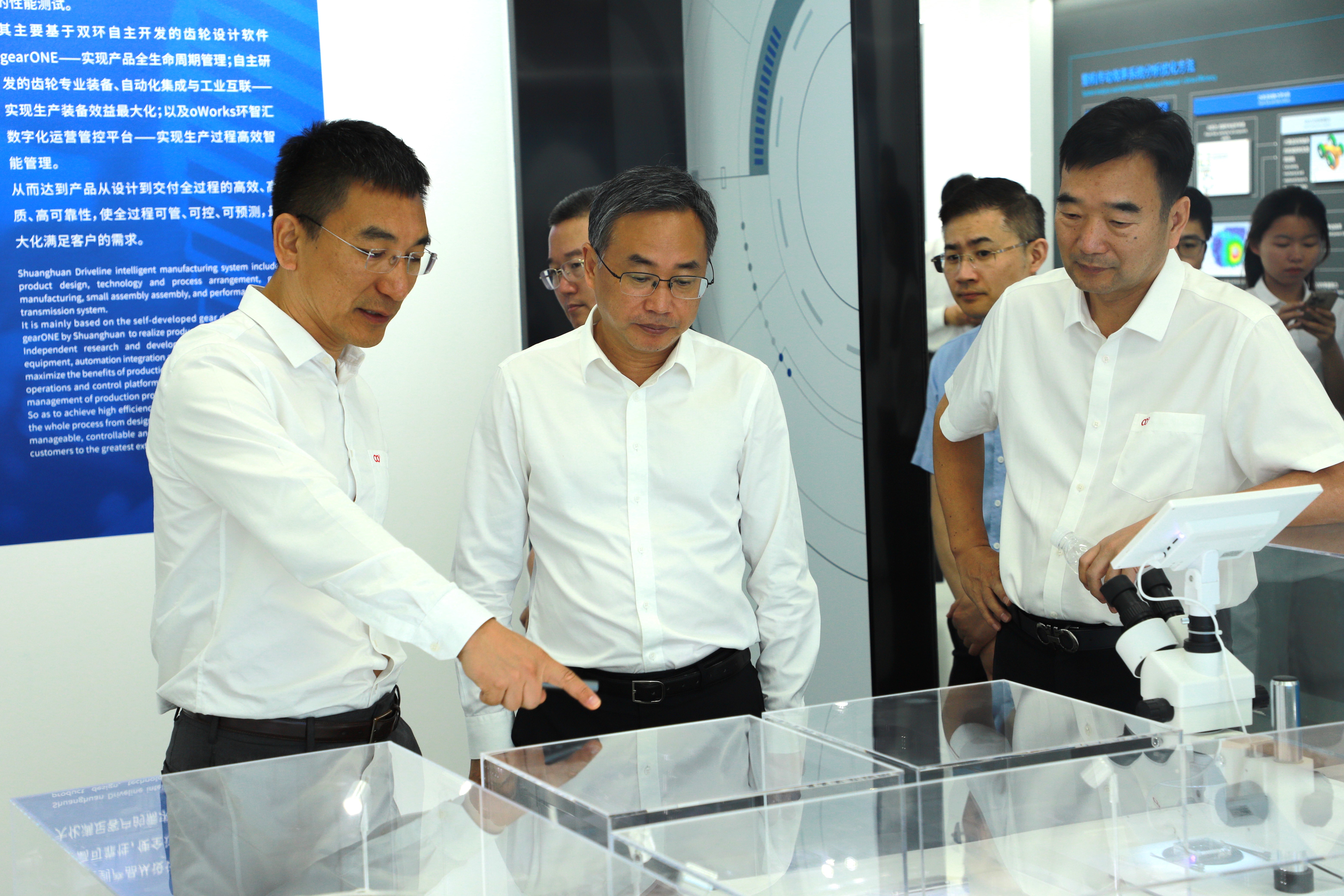 在吳長鴻等人的陪同下,許洪斌一行參觀了雙環(huán)研究院展廳,詳細(xì)了解了雙環(huán)的發(fā)展歷程、業(yè)務(wù)布局、技術(shù)創(chuàng)新成果、智能制造、公司產(chǎn)品等,感受雙環(huán)在齒輪制造領(lǐng)域數(shù)十年如一日的堅(jiān)守,對雙環(huán)在技術(shù)創(chuàng)新、數(shù)字化轉(zhuǎn)型、市場拓展等方面所做出的努力和取得的成果表示充分認(rèn)可。吳長鴻表示,雙環(huán)傳動成立45年來,始終堅(jiān)守齒輪主業(yè)、堅(jiān)持科研創(chuàng)新,實(shí)現(xiàn)了同心多元化發(fā)展。雙環(huán)技術(shù)上的突破源于“好一點(diǎn),好很多”的堅(jiān)持,這種對極致的追求,是一種始終傳承的企業(yè)文化。